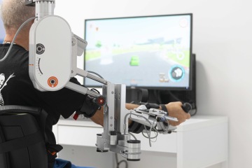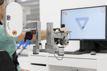 - Rukojeť má silový senzor, s jehož pomocí se pacient učí kontrolovat aktivitu prstů a nacvičovat úchop.