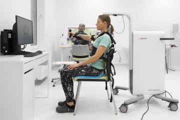 - Pacient plní pohybové úkoly ve virtuálním prostředí, jejichž úspěšnost je vyhodnocována a tím je umožněno sledovat efekt terapie.