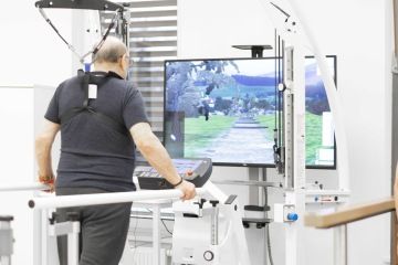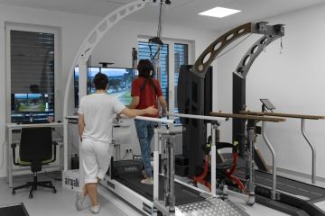 V případě deficitu ve stabilitě, či neschopnosti plné zátěže dolních končetin je chodník doplněn o dynamický systém pro odlehčení tělesné váhy pacienta.